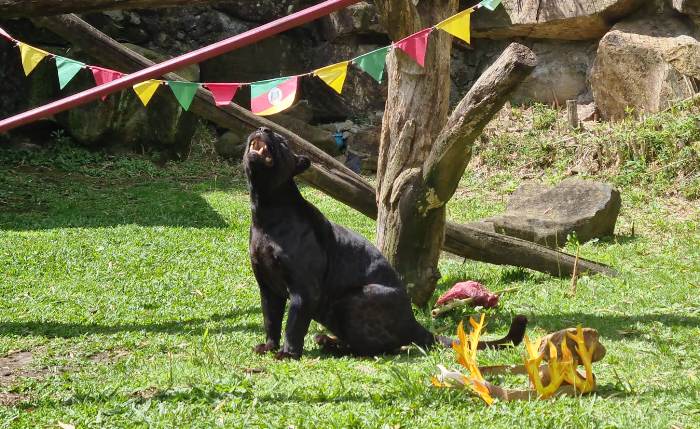Para marcar a festa, o programa de enriquecimentos ambientais está usando a temática das duas datas ao longo do feriadão. Enquanto onças, gatos-mouriscos e graxains ganharam um churrasco típico gaúcho, outras espécies que vivem no zoo desde a abertura receberam bolos de frutas.
