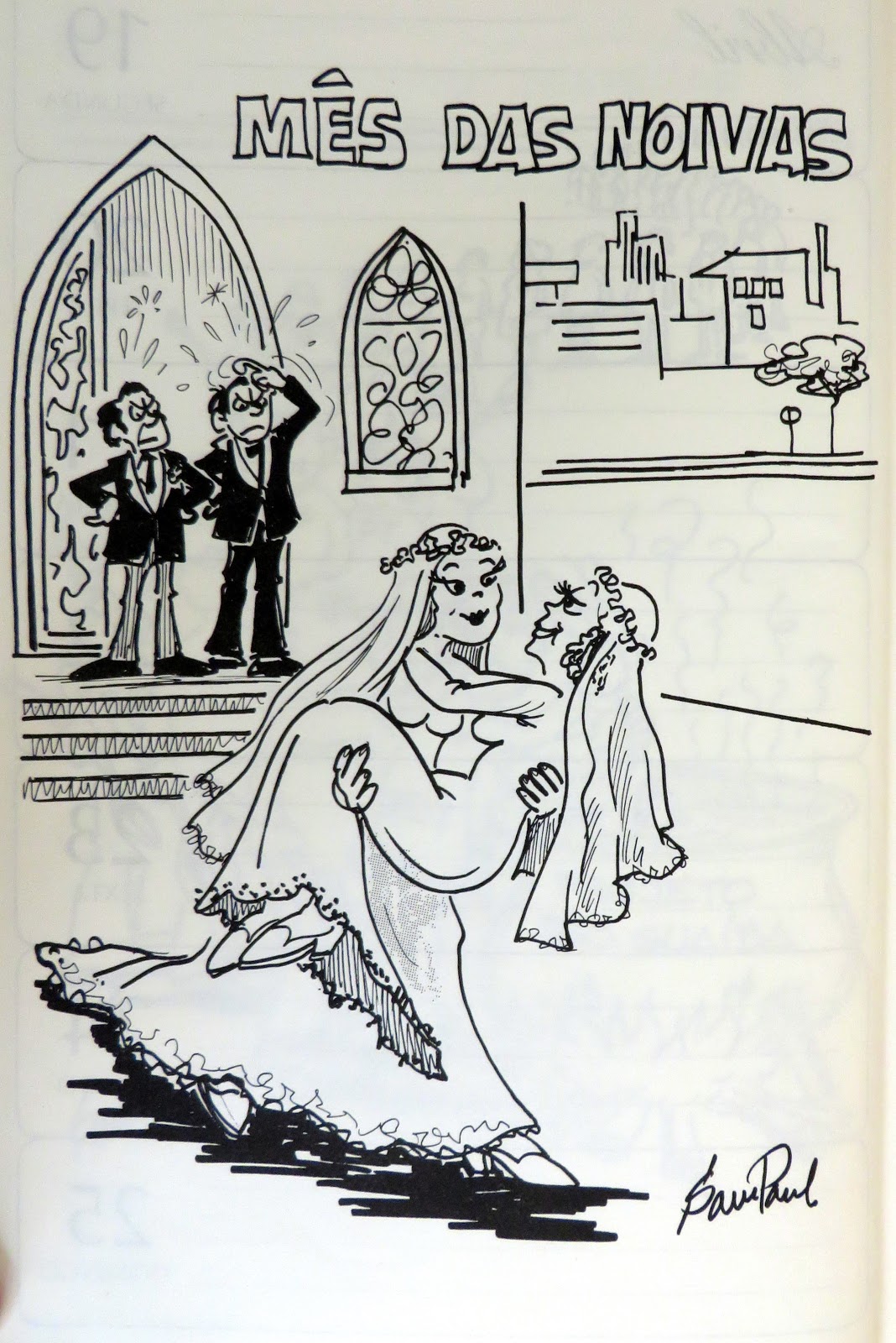 O cartunista Paulo Brasil Gomes de Sampaio, o SamPaulo, que nos deixou em 1999, trabalhou em vários jornais de Porto Alegre e ficou particularmente famoso quando trabalhou no jornal Folha da Tarde. Muito conversamos em animadas tertúlias e libações com molho de gargalhadas e cobertura de sorrisos. Já no início dos 1970 o Sampa era profético. E como. Basta olhar dois dos seus trabalhos abaixo.