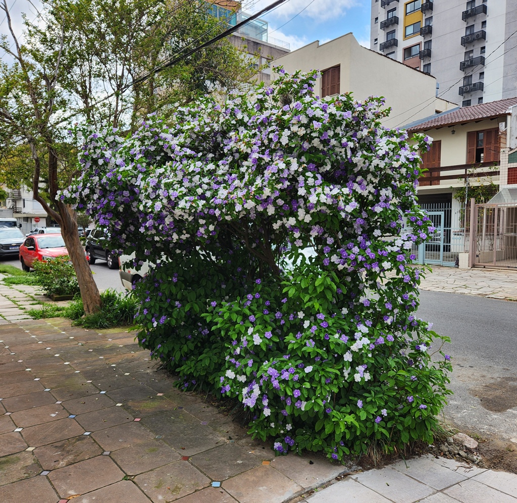 Que bom seria se o plantio de jasmineiros se propagasse pela cidade. Este exemplar, na rua Olavo Bilac, bairro Santana, cumprimenta todos os passantes, antes mesmo de passarem por ele.